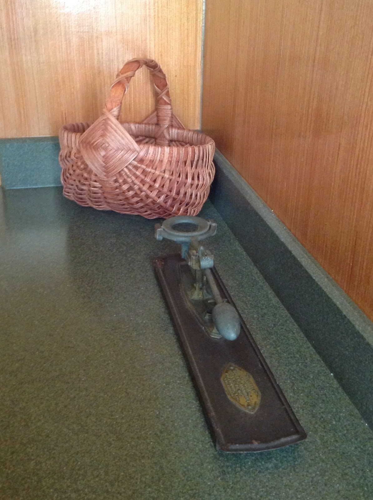 This wall is immediately on your right in the work area. There is a pegboard for implements, the candler, etc. He can keep an eye on how hot or cold the coop gets as that thermometer registers highs and lows. The chalkboard (upon which he wrote "Welcome Home" <heart melts>) is for keeping track of medications, notes, etc.